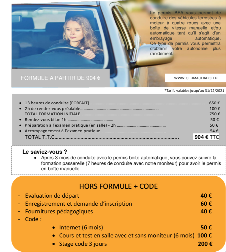 • Tarifs auto-école